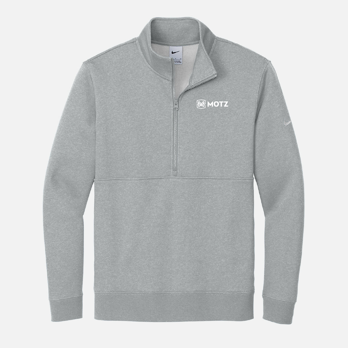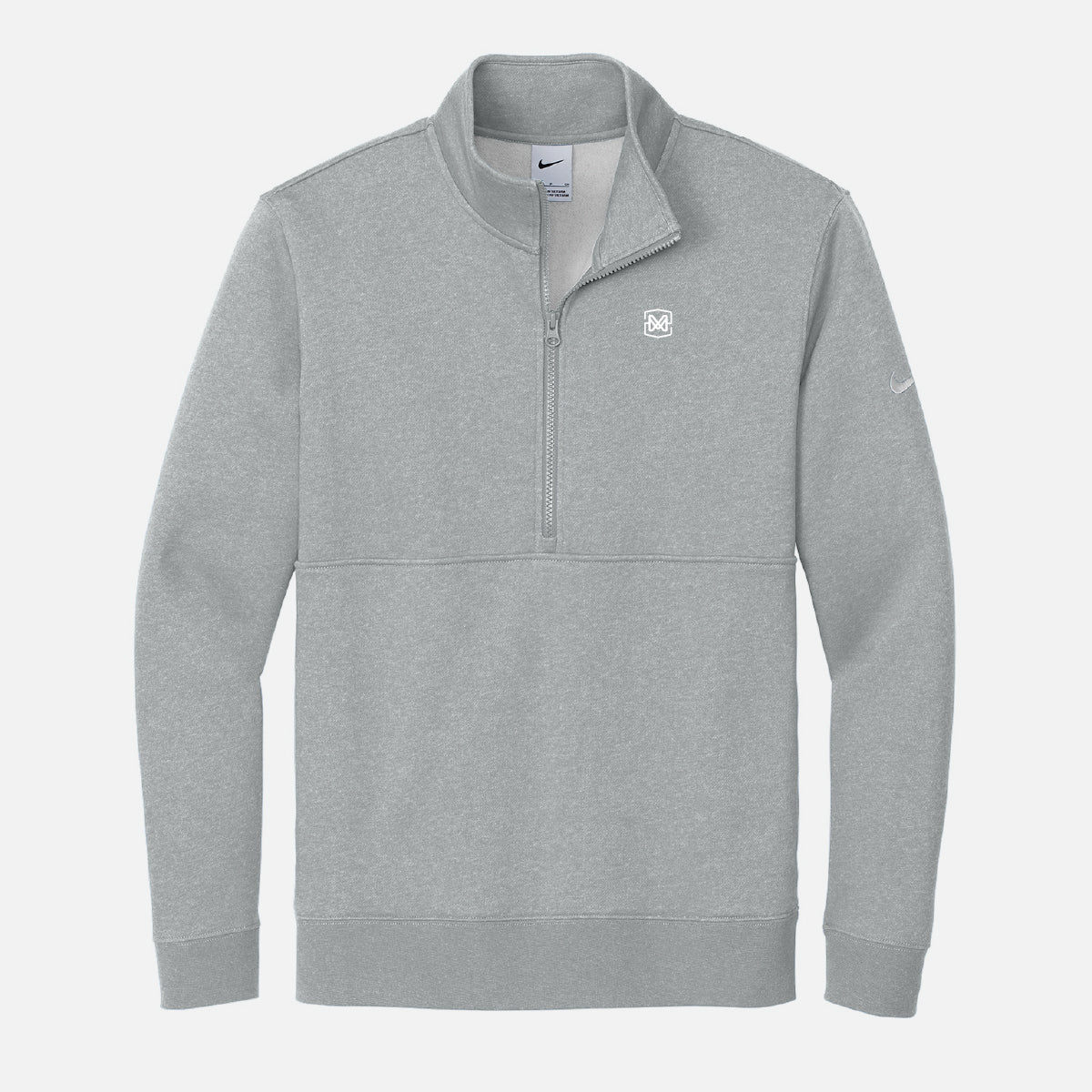 This men's Nike club fleece 1/2 zip comes in a dark grey heather color, and features your choice of logo.