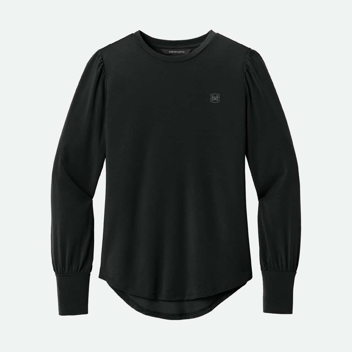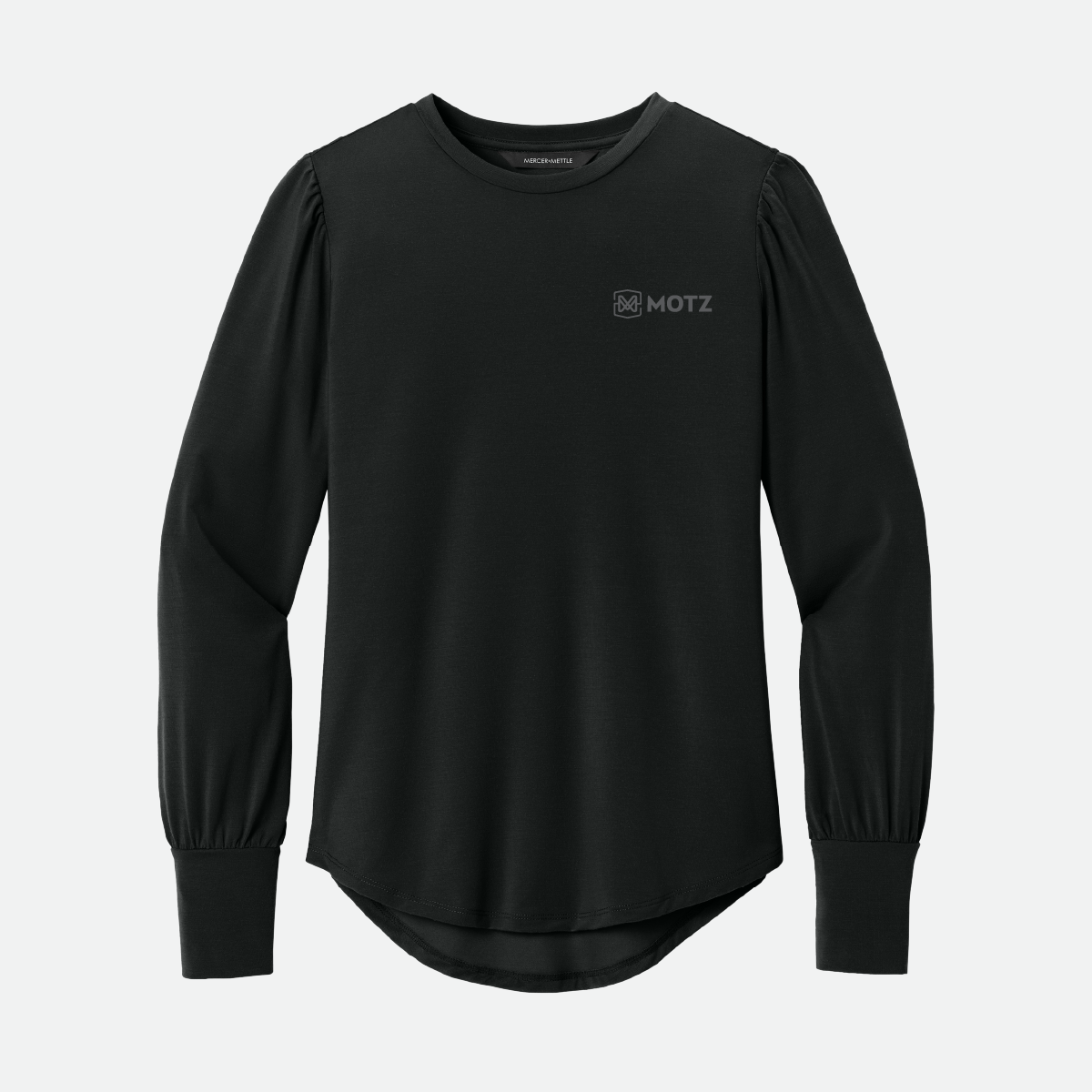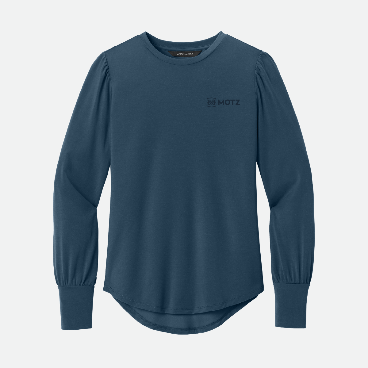 This Mercer+Mettle Women's Stretch Jersey Long Sleeve Blouson Top comes in your choice of color and features the either the Motz logo or icon.